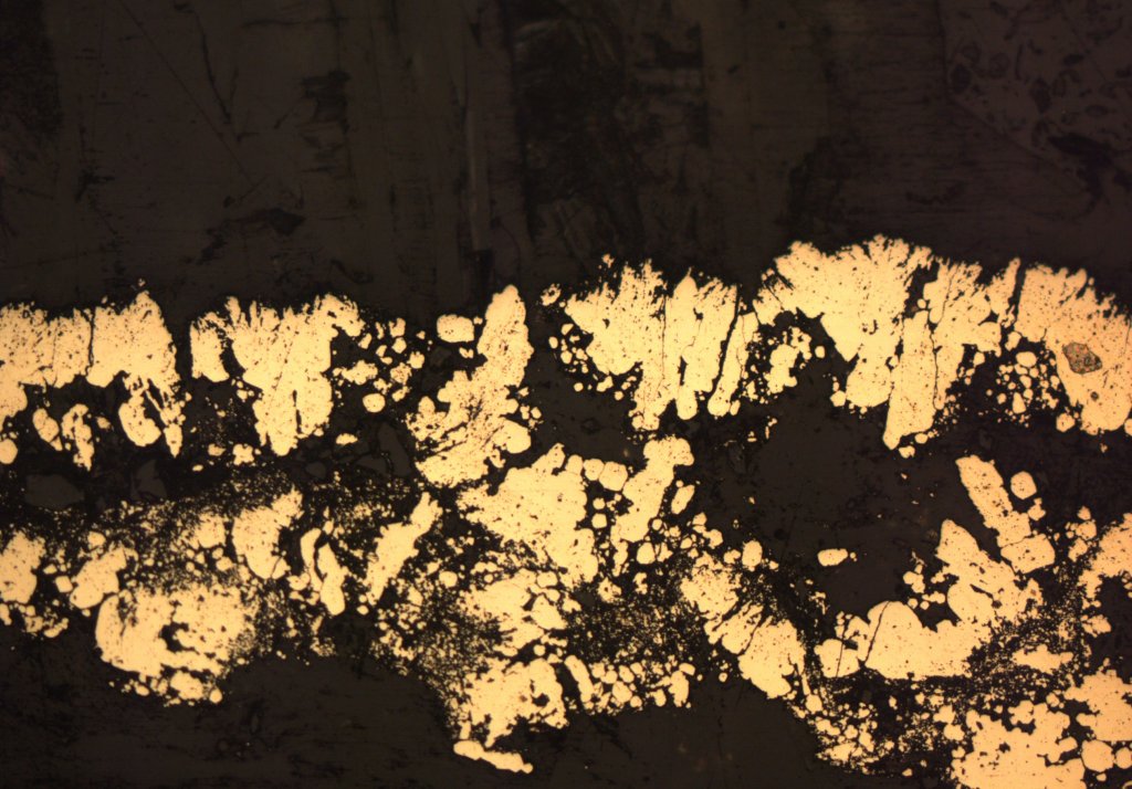 In our paper, we show that the answer might be “yes”. We studied some calcium sulfate veins from England that are similar in texture, composition, and context to those visited by the NASA rovers Opportunity and Curiosity on Mars. We found that these veins contain iron pyrite (a beautiful mineral, “fool’s gold”), one of the waste products of microbial sulfate reduction. To establish the origin of this pyrite, we used an instrument called an ion microprobe mass spectrometer to measure the isotopic composition of the sulfur in the pyrite. The results revealed a clear isotopic “biosignature” — a fingerprint left behind by bacteria deep underground millions of years ago. Organic compounds were also found, closely associated with the pyrite.
